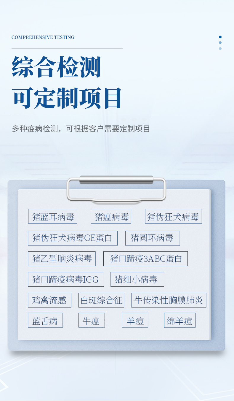 YP-SY96S動(dòng)物疫病診斷儀是我公司在新推出的一款全新檢測(cè)儀器,該系統(tǒng)采用酶聯(lián)免疫吸附測(cè)定法與相應(yīng)試劑配合可定性或定量進(jìn)行動(dòng)物疫病快速診斷。如:豬藍(lán)耳病毒、豬瘟病毒、豬偽狂犬病毒、豬偽狂犬病毒gE蛋白、豬圓環(huán)病毒、豬乙型腦炎病毒、豬口蹄疫3ABC蛋白、豬口蹄疫病毒IgG、豬細(xì)小病毒、雞禽流感、藍(lán)舌病、白斑綜合征、牛傳染性胸膜肺炎、牛瘟、綿羊痘和山羊痘等等疫病檢測(cè),并可根據(jù)客戶需要定制項(xiàng)目。