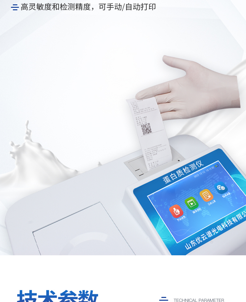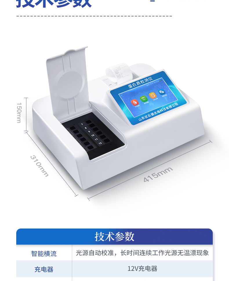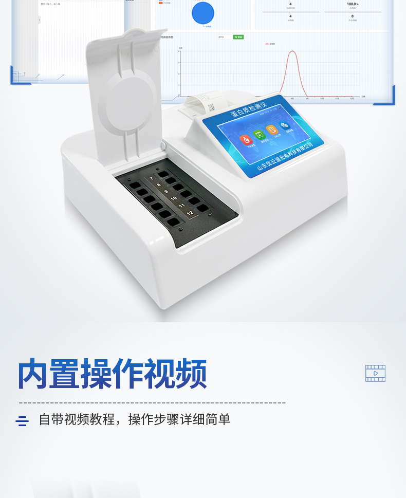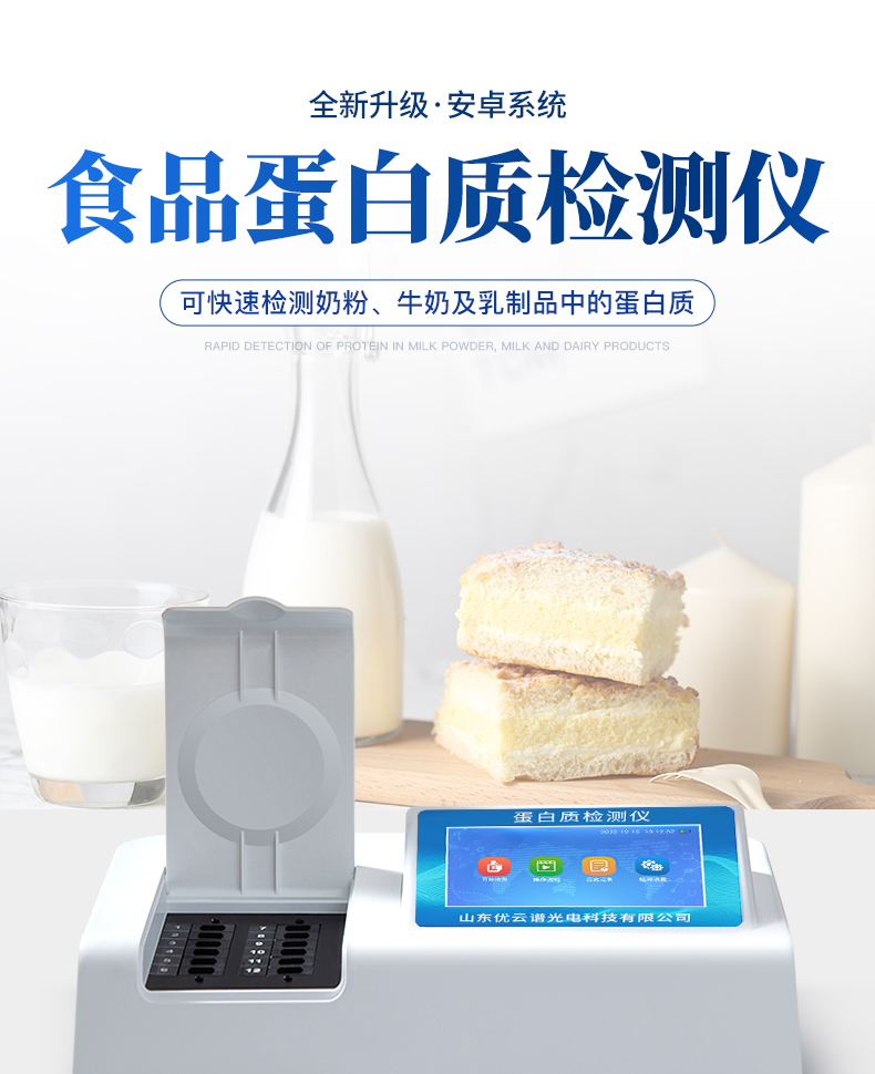 檢測項(xiàng)目:可快速檢測奶粉、牛奶及乳制品中的蛋白質(zhì),儀器預(yù)留其他項(xiàng)目檢測程序和端口,根據(jù)日后需求可方便的自主增加檢測項(xiàng)目。