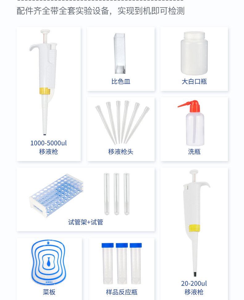 5. 測量方式:樣品顯色和測量為為標(biāo)準(zhǔn)1cm比色皿,無需轉(zhuǎn)移,提高檢測精密度。
