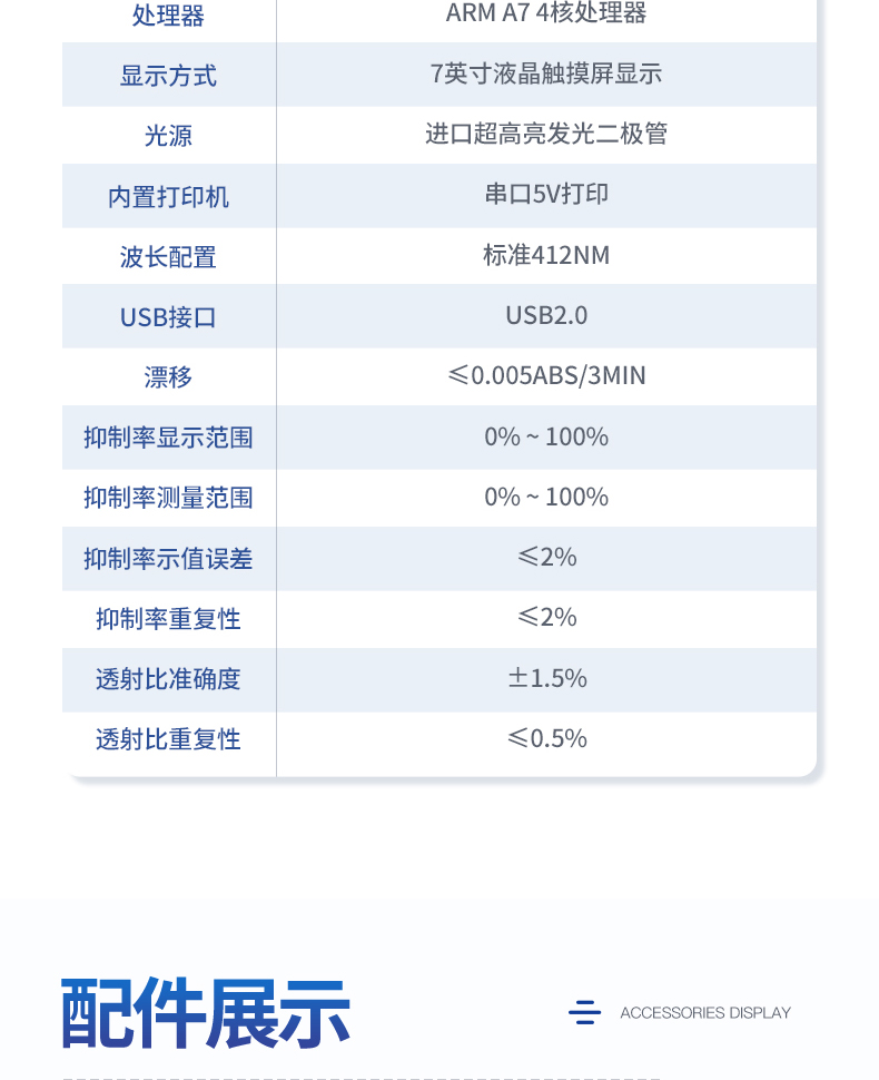 7、吸光度準(zhǔn)確度:±2.0%