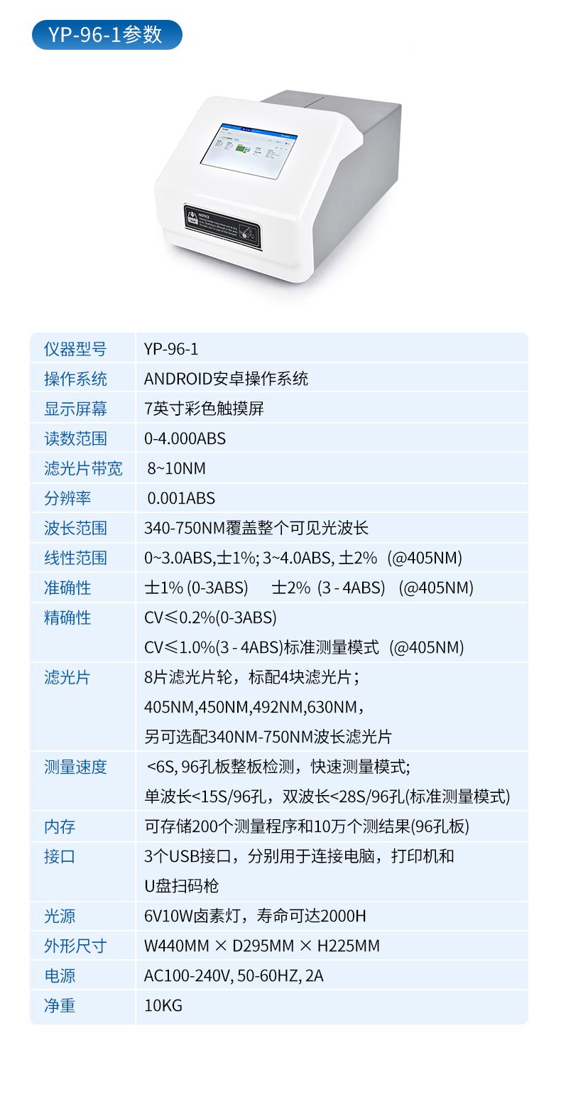 *讀板速度:單波長≤3秒/96孔,雙波長≤6秒/96孔