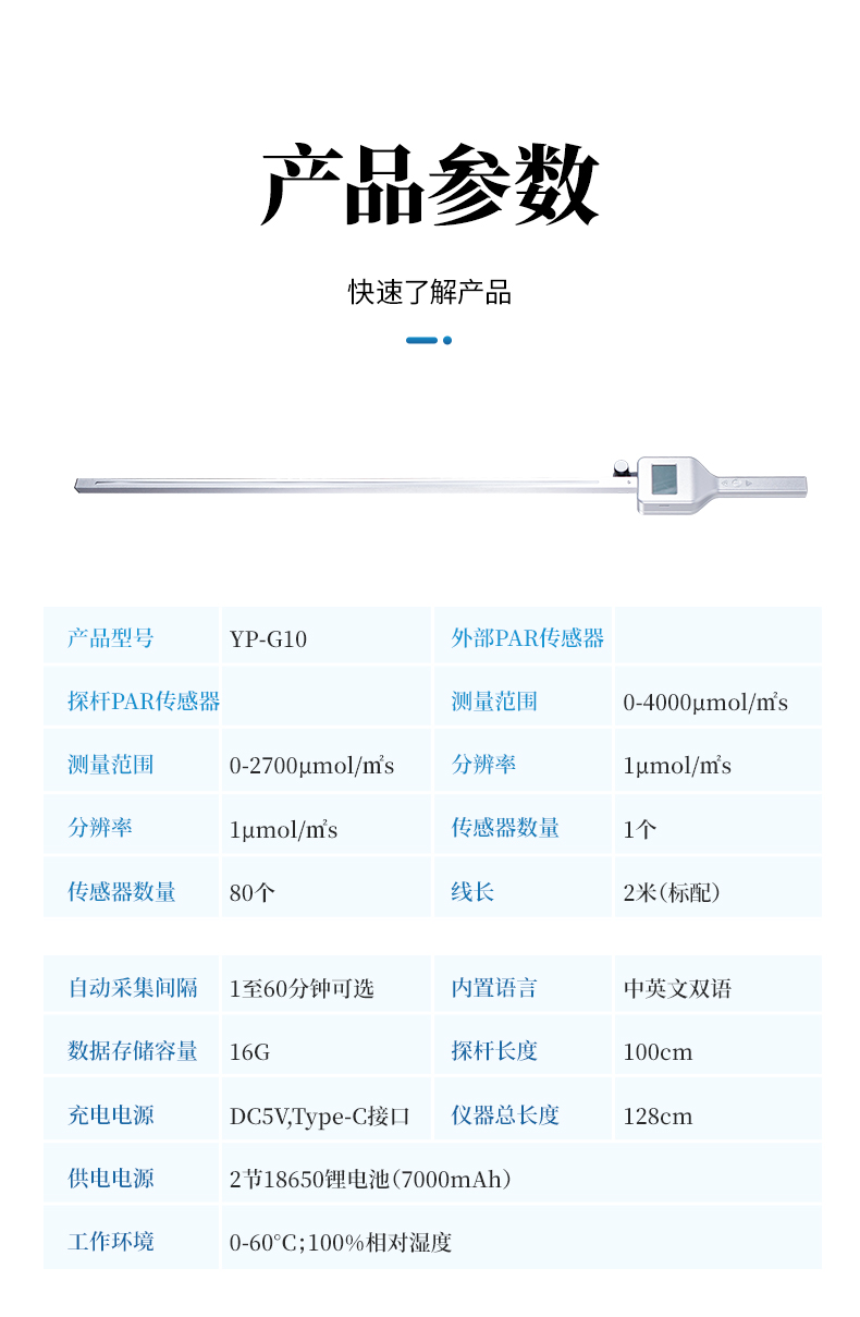 6. 測量范圍0~3000μmol/㎡?S