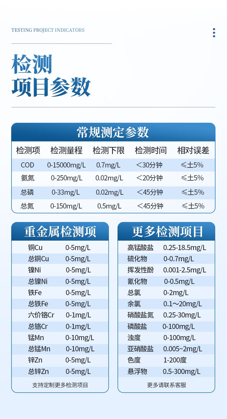 檢測方法:水質(zhì)化學需氧量快速檢測法;