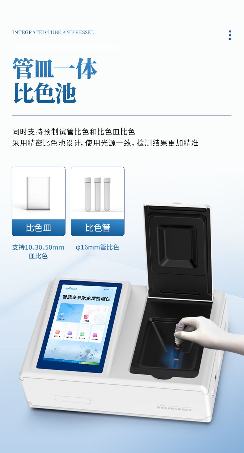 3、采用精密比色池設計,使用光源一致,可以解決由于光源誤差帶來的檢測結(jié)果誤差問題,檢測結(jié)果更加精準。