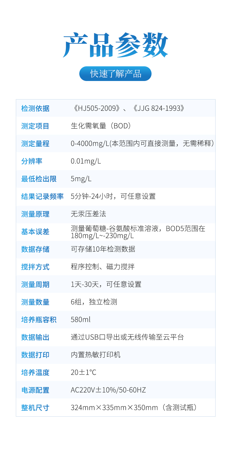 生化需氧量(BOD)測定儀是根據(jù)國家標(biāo)準(zhǔn)《HJ505-2009》5日培養(yǎng)法,模擬自然界中有機物的生物降解過程,采用簡單、安全、可靠的無汞壓差感測法測量水中BOD濃度;全智能化設(shè)計,領(lǐng)先的研發(fā)工藝和設(shè)計制造,實驗過程無需實驗人員值守;適用于排污企業(yè)、環(huán)境監(jiān)測、污水處理廠、第三方檢測機構(gòu)、科研、高校等領(lǐng)域的生化需氧量測定。