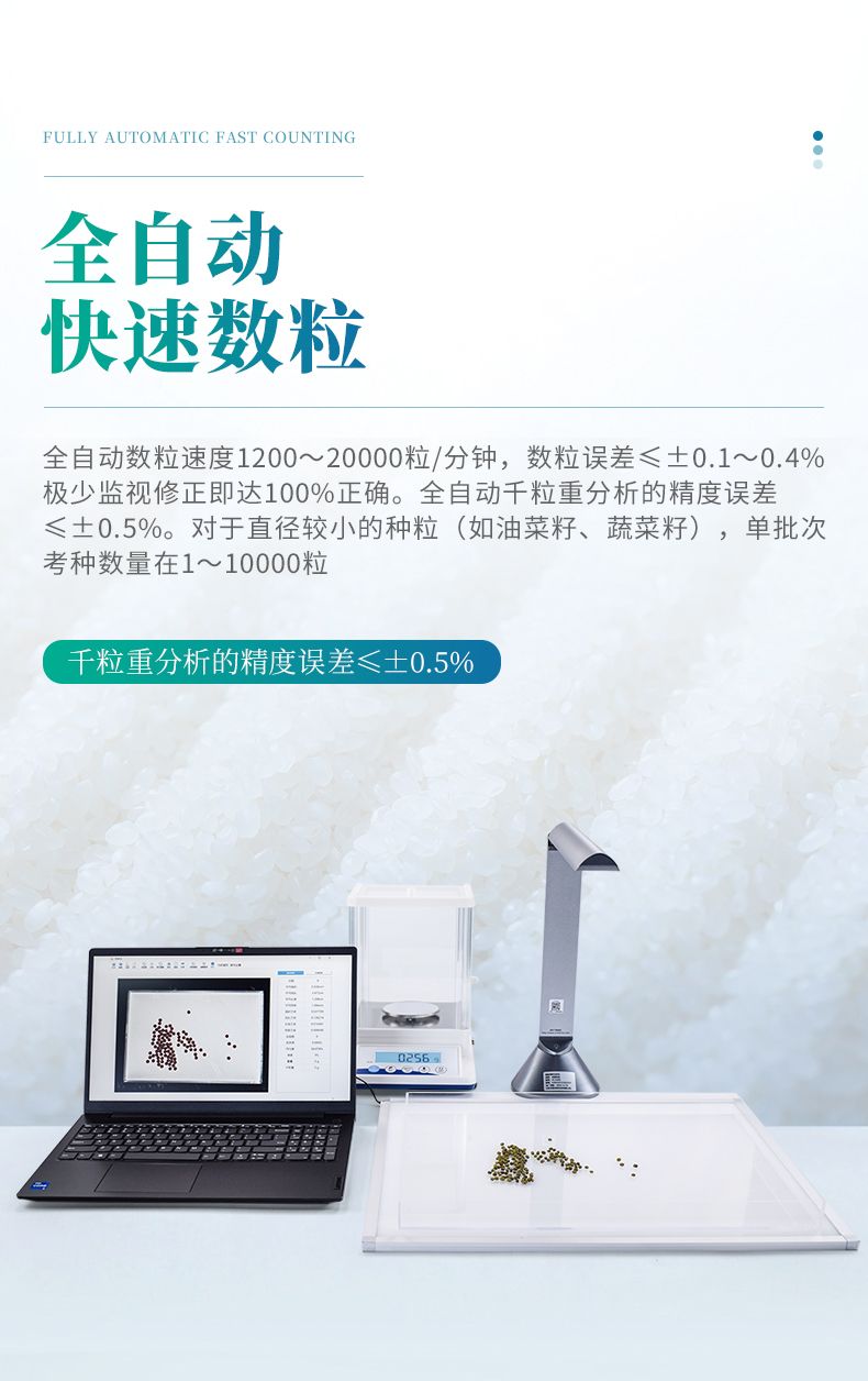 3、數(shù)粒精度與目標(biāo)大?。?~2000粒/次,數(shù)粒誤差≤±0.2%,極少監(jiān)視修正即可保證結(jié)果準(zhǔn)確性。千粒重分析的精度誤差:≤±1mg;