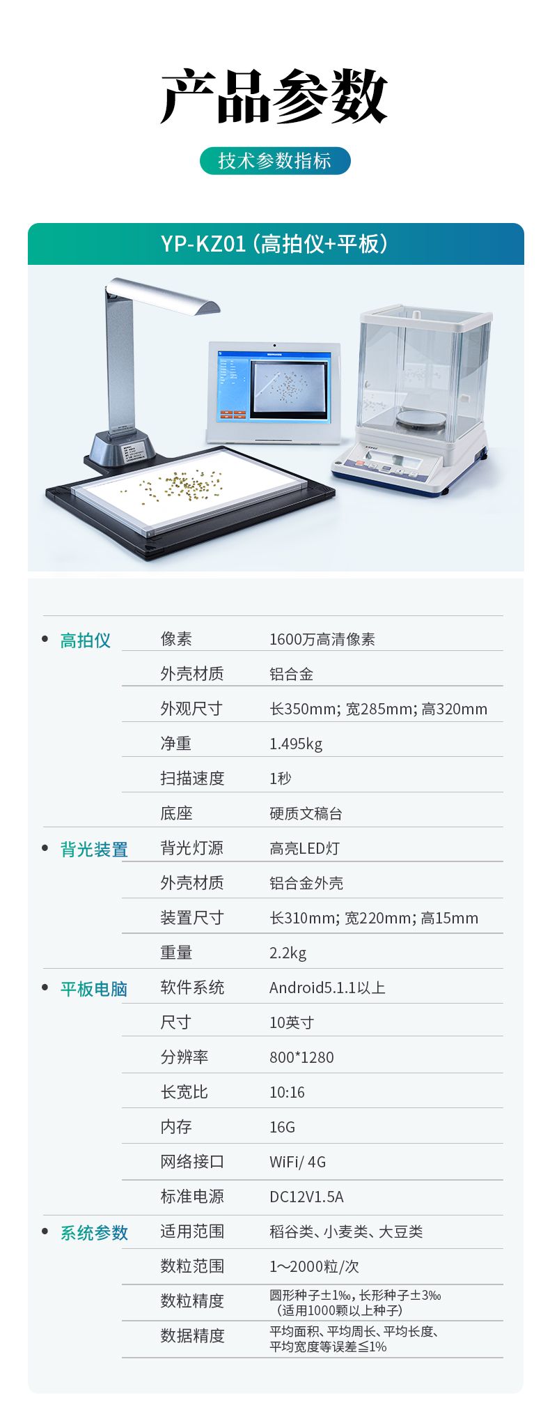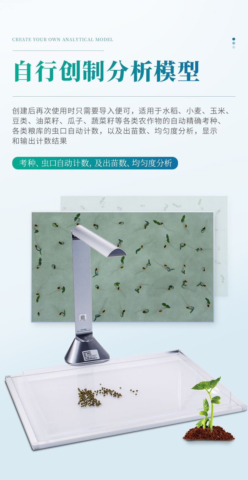 智能考種系統(tǒng)由三部分組成:1600萬(wàn)高拍儀、背光裝置和裝有嵌入式軟件的平板。背光裝置采用的是高亮LED燈,外邊框使用鋁合金材質(zhì)制成。軟件采用先進(jìn)的圖像處理技術(shù),根據(jù)距離變換原理、形態(tài)學(xué)、凸包檢測(cè)等技術(shù)綜合設(shè)計(jì)的一款嵌入式軟件。該設(shè)備主要應(yīng)用在農(nóng)業(yè)領(lǐng)域的田間作物測(cè)產(chǎn)及考種等方面,通過(guò)高拍儀拍攝的照片,軟件自動(dòng)計(jì)算種子數(shù)量,種子的面積、周長(zhǎng)、長(zhǎng)度、寬度、長(zhǎng)寬比等數(shù)據(jù),根據(jù)天平所得的重量與種子的數(shù)量自動(dòng)計(jì)算出千粒重;以列表和圖形的方式輸出結(jié)果,便于用戶查看與分析研究。本產(chǎn)品也可以手動(dòng)對(duì)作物種子數(shù)量修正以確保計(jì)數(shù)精度、對(duì)數(shù)據(jù)進(jìn)行保存,并且可以查看數(shù)據(jù)報(bào)表,最后可以將數(shù)據(jù)以Excel格式導(dǎo)出,或者通過(guò)WiFi數(shù)據(jù)上傳到儀器云數(shù)據(jù)管理系統(tǒng)從而實(shí)現(xiàn)數(shù)據(jù)統(tǒng)計(jì),分析智能化。