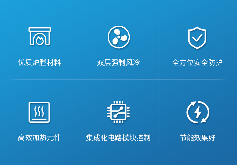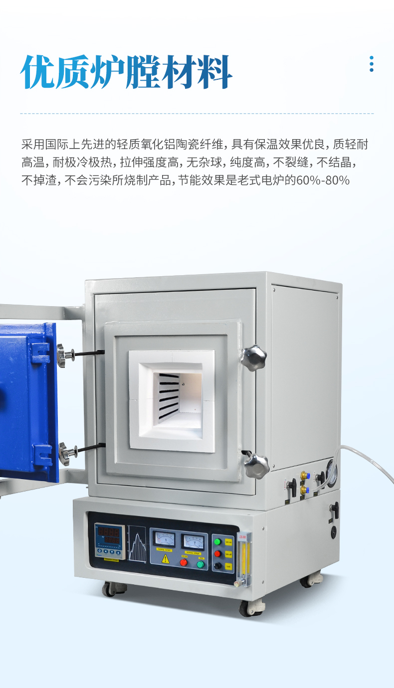 1、爐膛采用優(yōu)質(zhì)氧化鋁纖維材料,保溫性能好,耐用,拉伸強(qiáng)度高,無(wú)雜球,純度高,節(jié)能效果明顯;