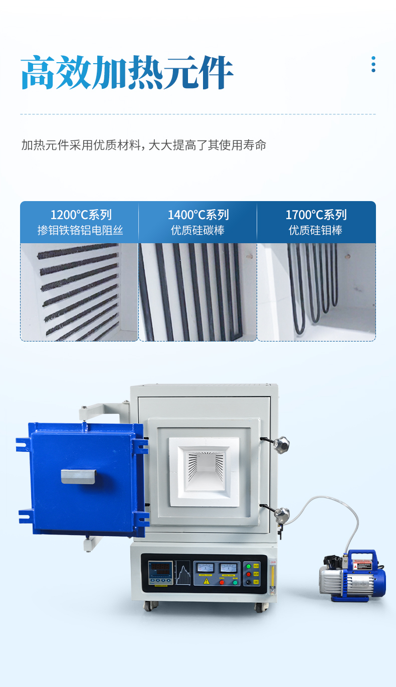 2、加熱元件采用優(yōu)質(zhì)HRE電阻絲,大大提高了其使用壽命;