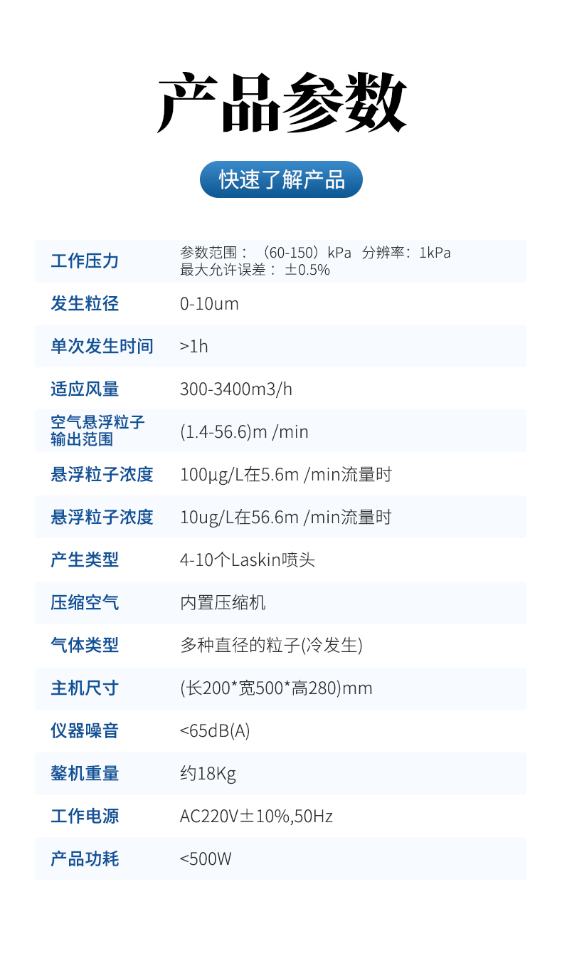 【產(chǎn)品簡介】發(fā)生粒徑:0-10um;單次發(fā)生時間:>1h
