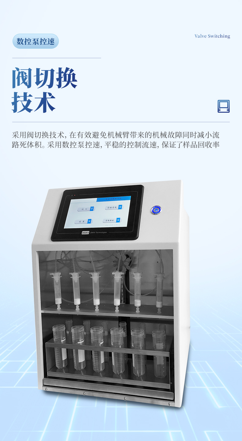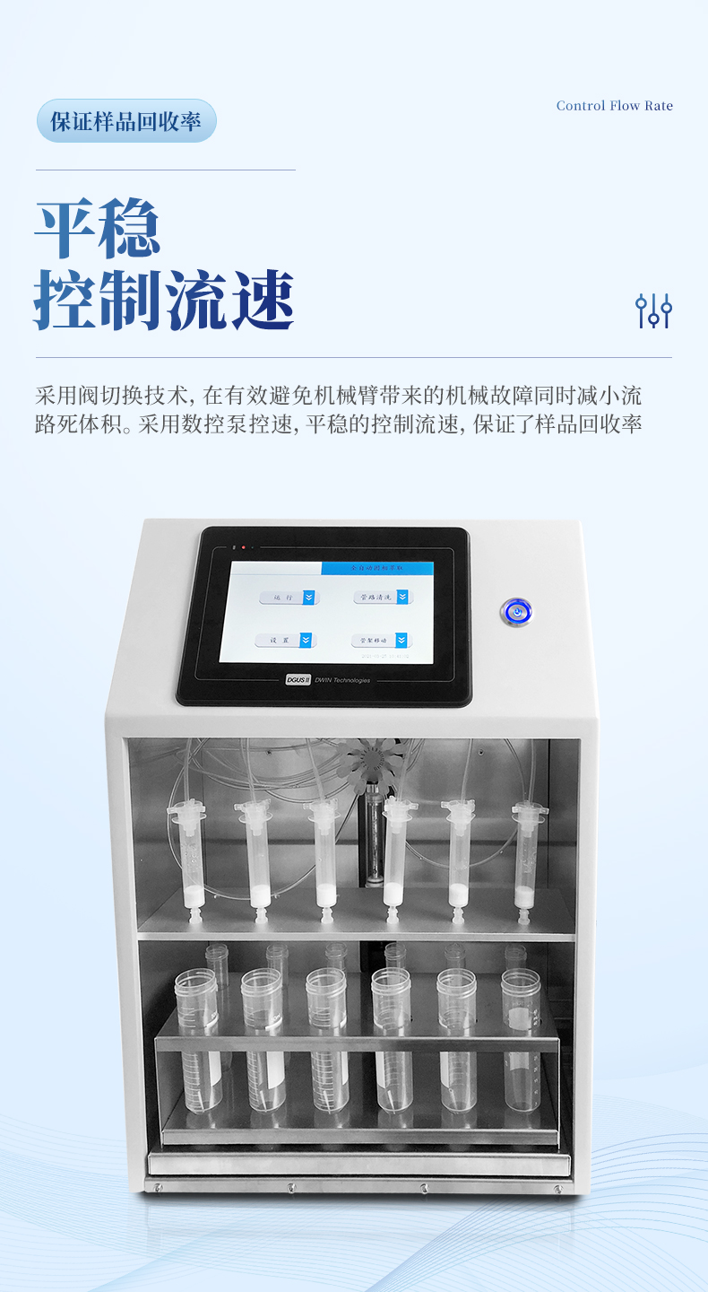 3. SPE全自動固相萃取儀采用數(shù)控泵控速,、平穩(wěn)的控制流速,保證了樣品回收率;