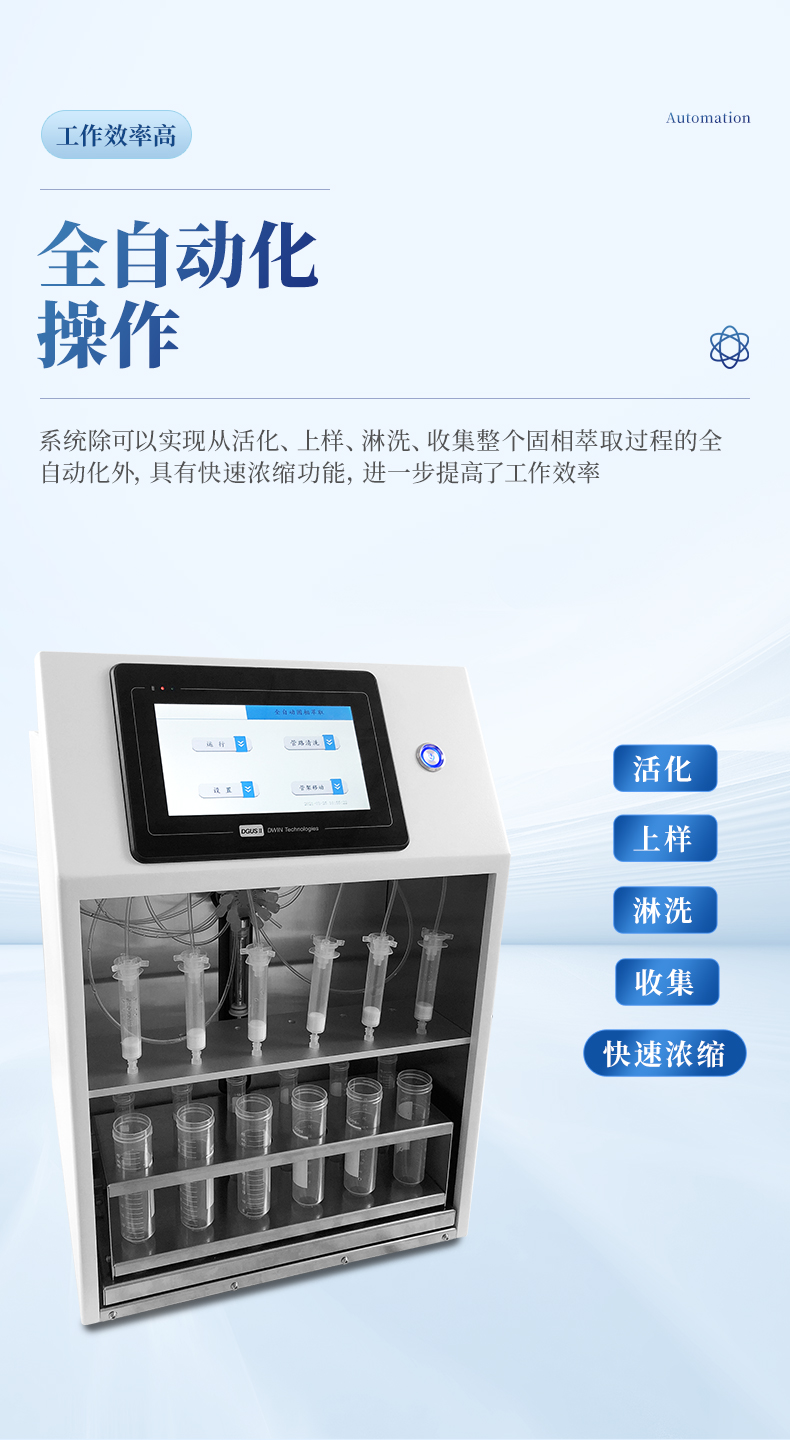 全自動固相萃取儀是針對目前實驗室前處理樣品自動化程度高特點按照全新設(shè)計理念推出的一款全自動固相萃取系統(tǒng)。主要用于食品、藥品、飲料、土壤、水樣等樣品提取液中痕量有機物的萃取、分離和凈化。
