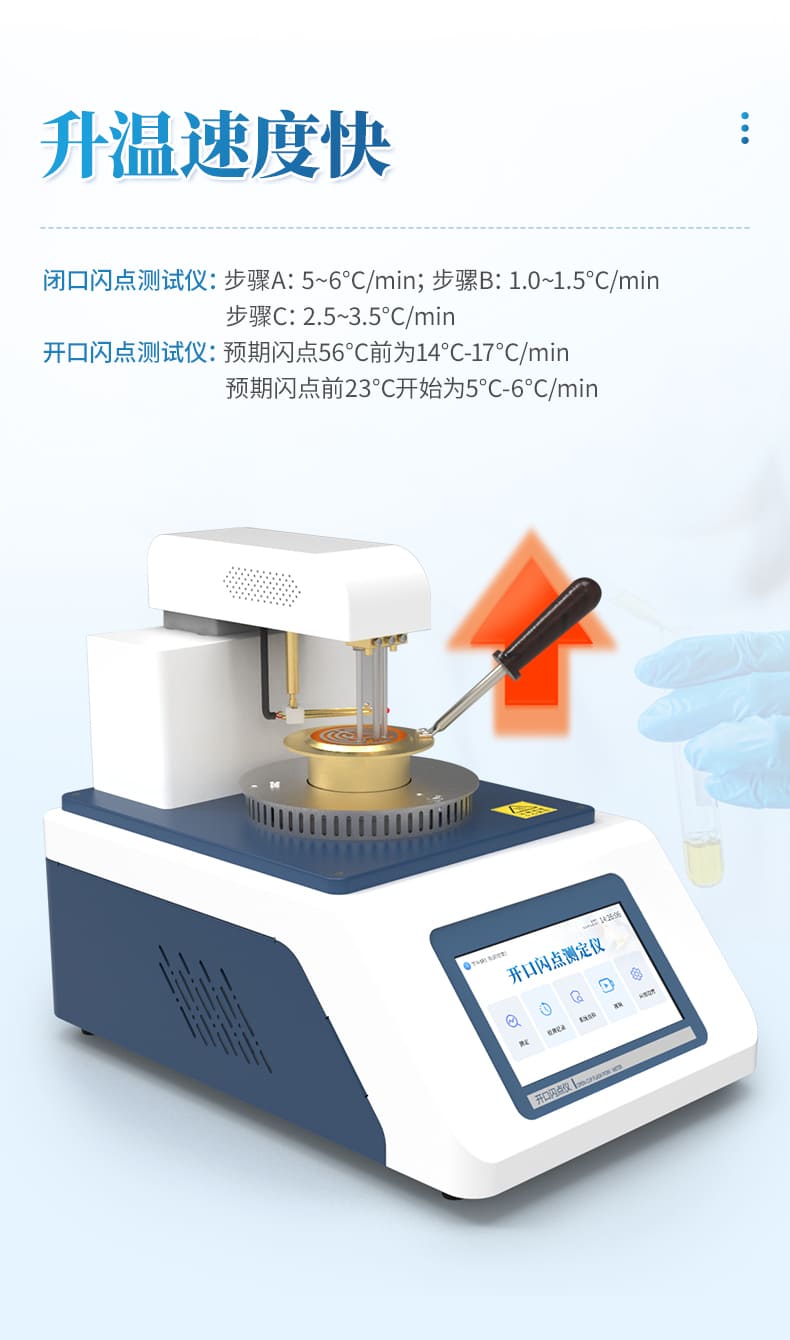 267-88的情況下,連續(xù)測試同一樣品,兩者閃點(diǎn)值相差≤4℃。4、自動(dòng)化程度高??梢宰詣?dòng)完成測試過程,自動(dòng)進(jìn)行冷卻,自動(dòng)信息提示等。開口閃點(diǎn)測定儀功能與性能和國內(nèi)外最高水平接軌,是石油、電力、化工、商檢等行業(yè)替代進(jìn)口產(chǎn)品的專用儀器。