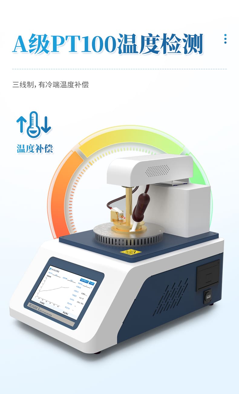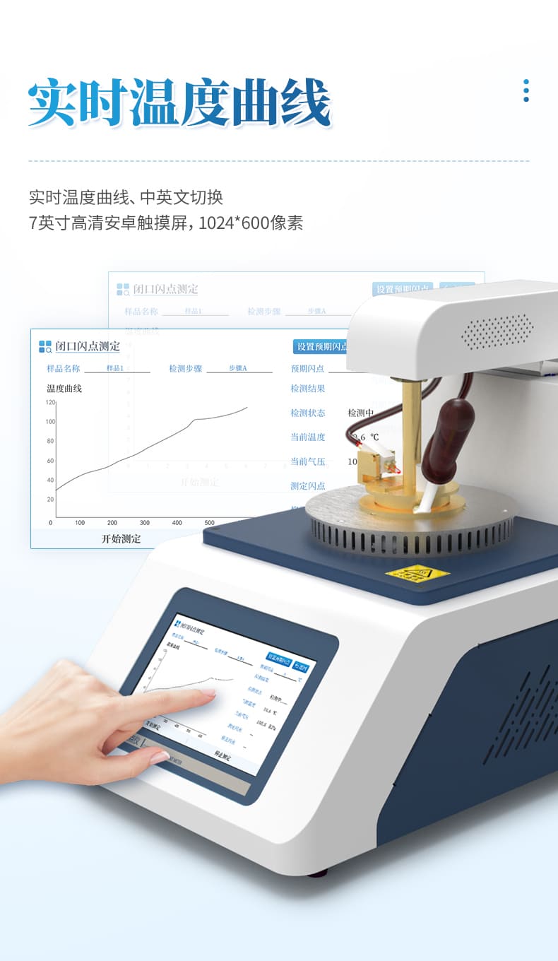 儀器按照GB/T 261-2021方法規(guī)定的升溫曲線加熱,溫度接近預(yù)期閃點值時自動點火,當(dāng)出現(xiàn)閃點時儀器自動鎖定結(jié)果,并顯示和打印,同時啟動風(fēng)機自動對加熱器進行冷卻。