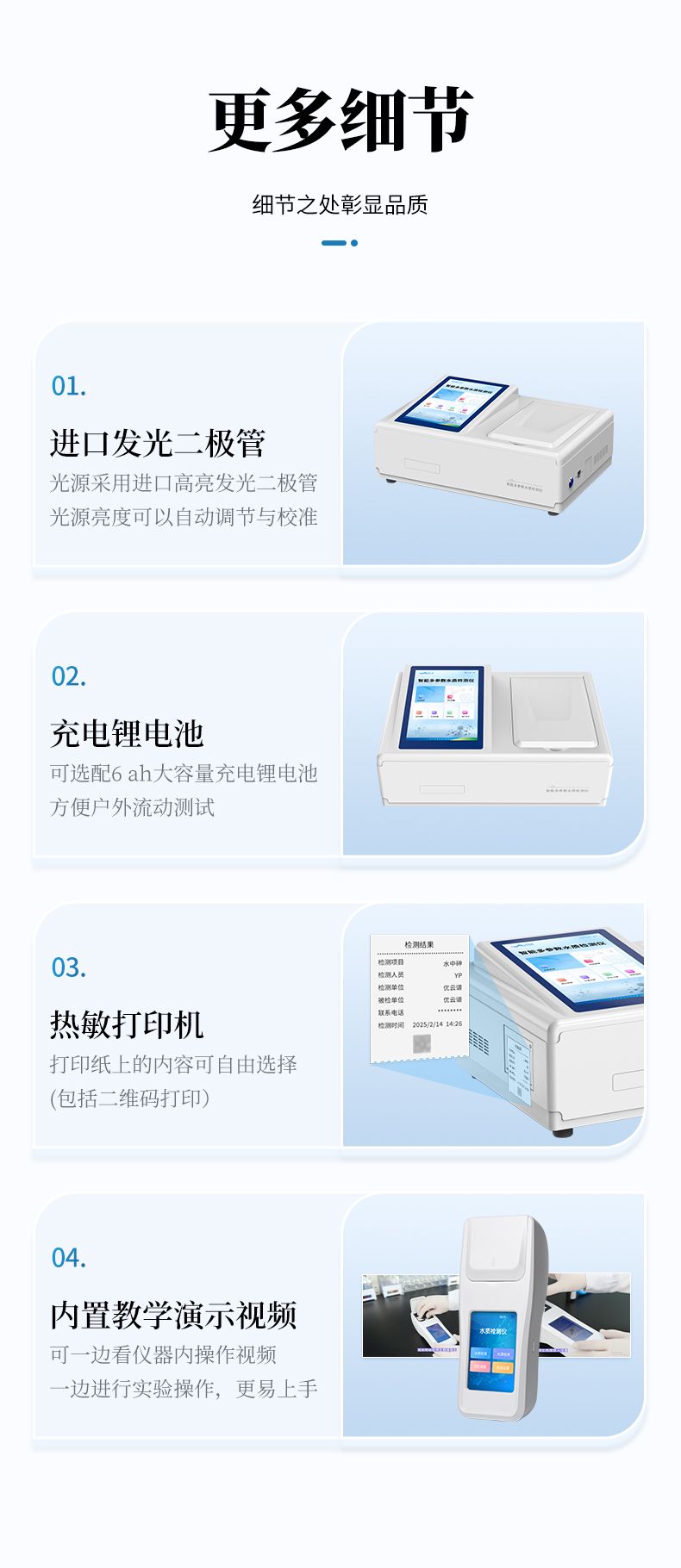 3.采用精密比色池設(shè)計(jì),使用光源一致,可以解決由于光源誤差帶來(lái)的檢測(cè)結(jié)果誤差問(wèn)題,檢測(cè)結(jié)果更加精準(zhǔn);
