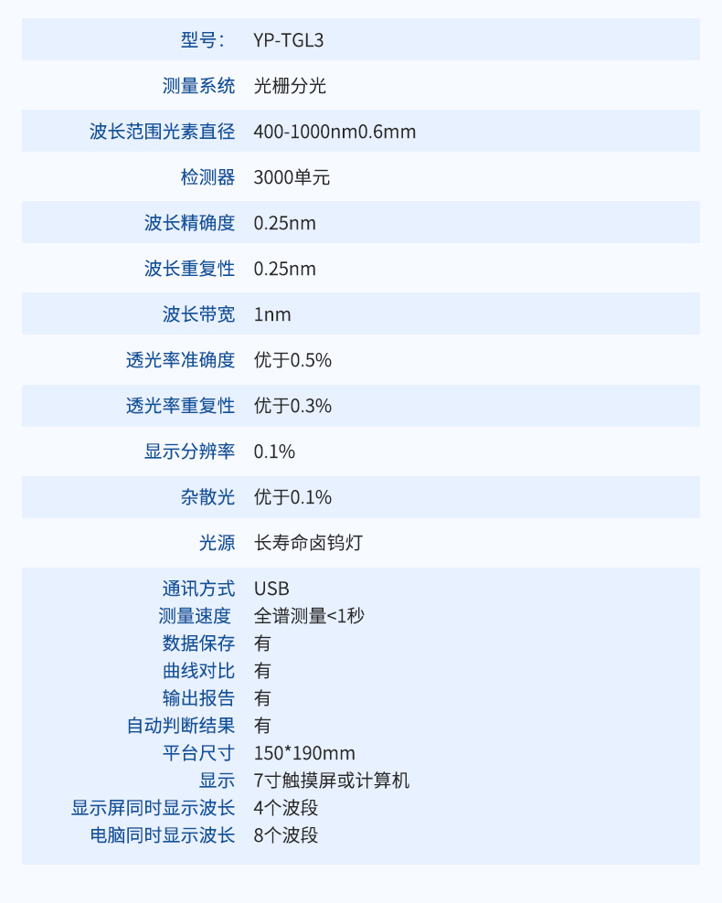 | 測(cè)量速度 | 全譜測(cè)量<1秒 |