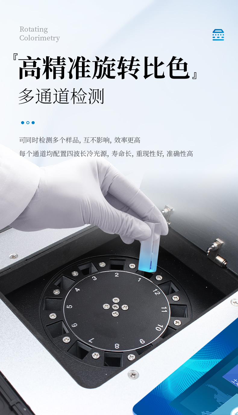 ★2、采用精密旋轉(zhuǎn)比色池設(shè)計(專利號:ZL 2018 2 1777724.7),光源一致性更加精確,保證檢測精度。