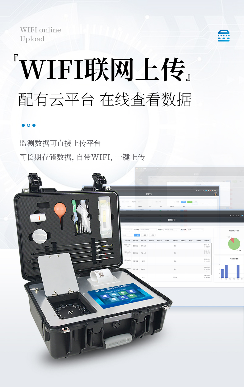 ★6、儀器標(biāo)配wifi無線上傳、4G聯(lián)網(wǎng)傳輸、GPRS無線遠(yuǎn)傳,快速上傳數(shù)據(jù)。