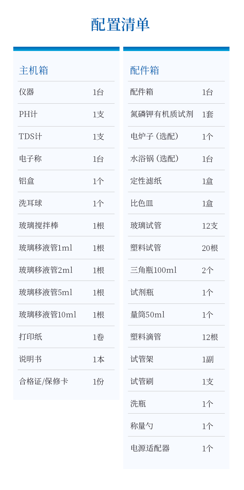 八、科研級土壤肥料養(yǎng)分檢測儀配置清單: