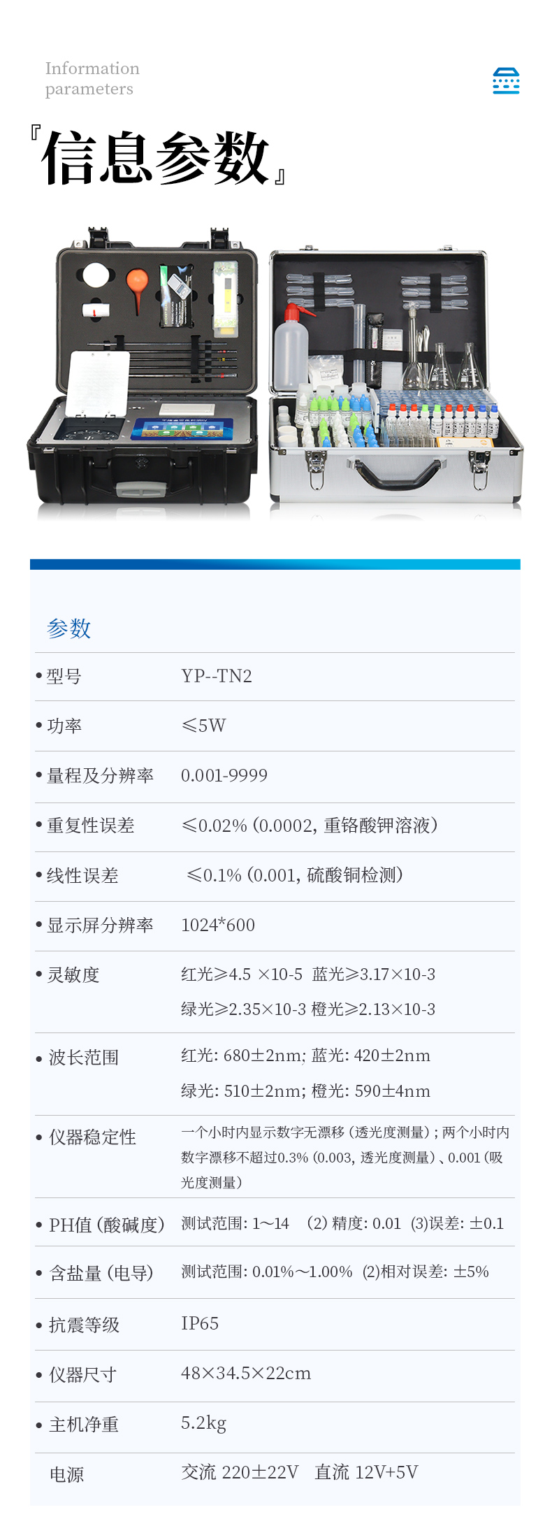 9.PH值(酸堿度): (1)測試范圍:1~14  (2)精度:0.01  (3)誤差:±0.1