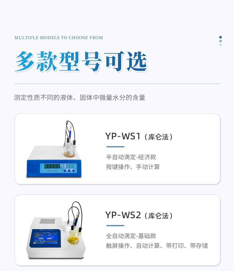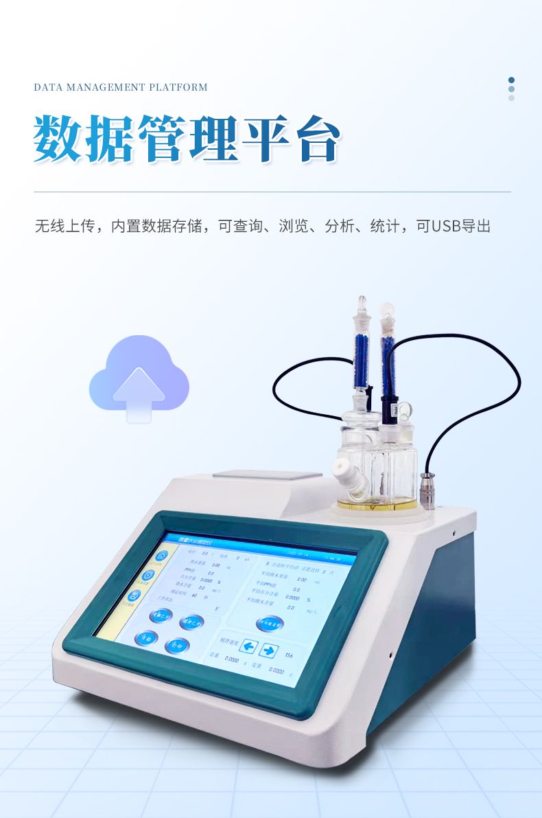 3.儀器采用全密封滴定池瓶,避免試劑與人接觸,杜絕環(huán)境濕度對檢測的影響;檢測過程中儀器自動控制,攪拌、測定60秒左右完成,可直接顯示測定結(jié)果,無需人員頻繁操作。