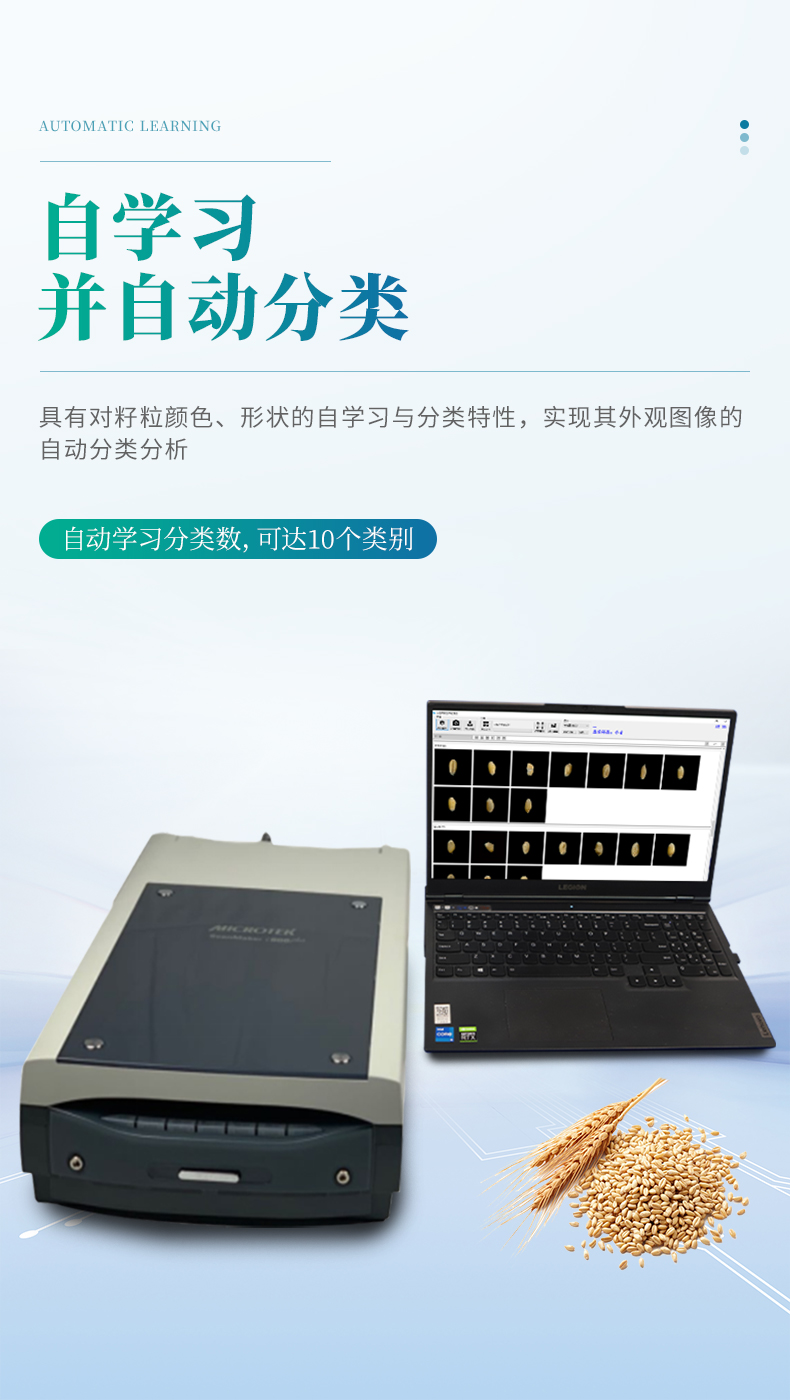 6.具有按園林協(xié)會RHS2015比色卡的自動比色特性,根據(jù)正常籽粒與各類非常籽粒顏色、紋理、形狀上的差異來自動識別與分類分析,具有對籽粒顏色、形狀的自學(xué)習(xí)與分類特性,實(shí)現(xiàn)其外觀圖像的自動分類分析(自動學(xué)習(xí)分類數(shù)*多可達(dá)10個類別)