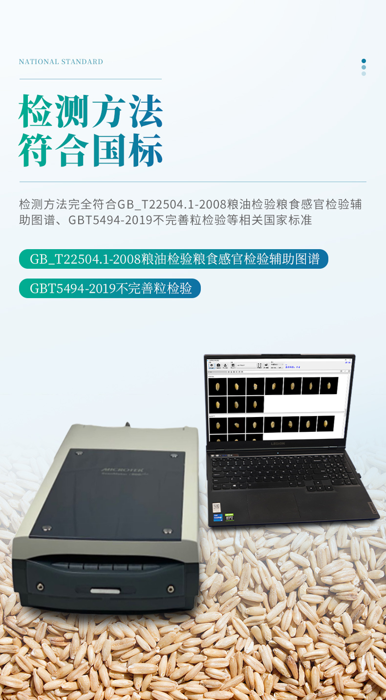 1.檢測方法完全符合GB_T22504.1-2008糧油檢驗(yàn)糧食感官檢驗(yàn)輔助圖譜、GBT5494-2019不完善粒檢驗(yàn)等相關(guān)國家標(biāo)準(zhǔn)。