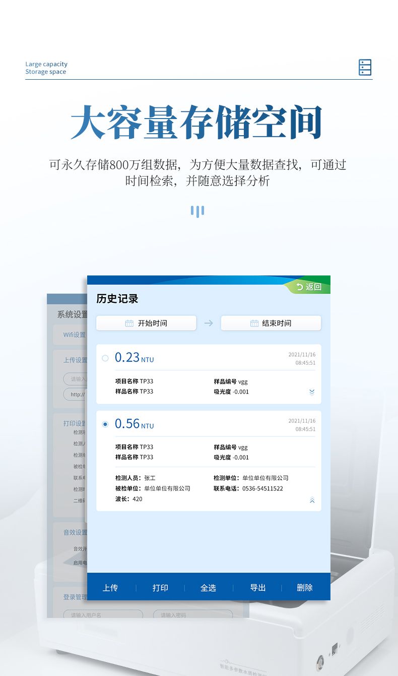 8、儀器可永久存儲800萬組數(shù)據(jù),為方便大量數(shù)據(jù)查找,可通過時間檢索,并隨意選擇分析;