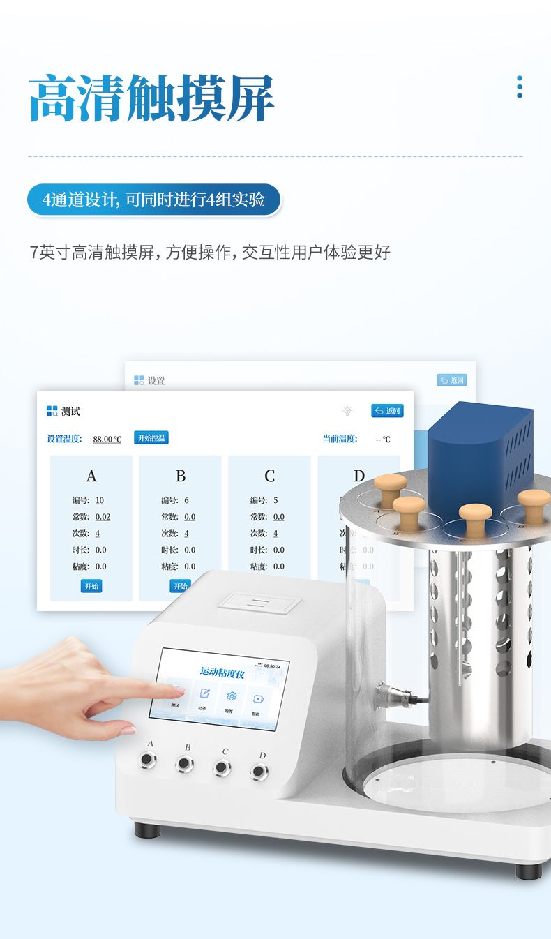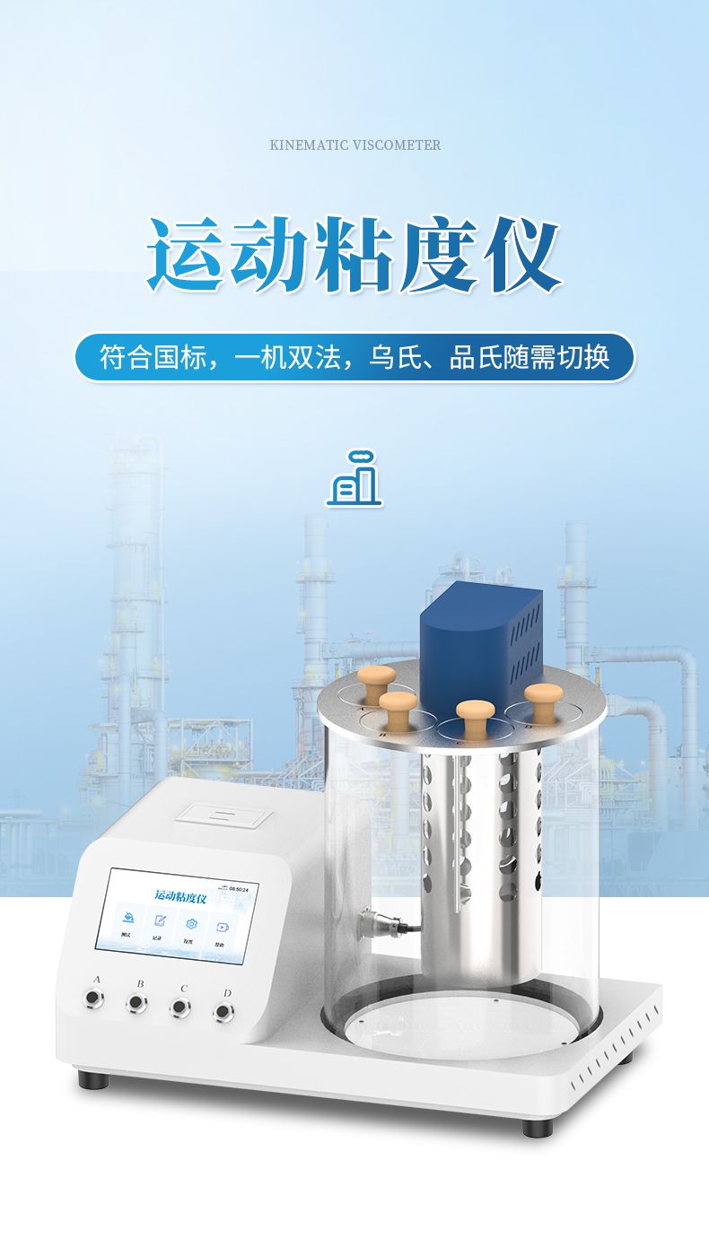 本產(chǎn)品石油產(chǎn)品運動粘度自動測定儀是依據(jù)國家標(biāo)準(zhǔn)《GB265-88石油產(chǎn)品運動粘度測定法》設(shè)計制造的專用測試儀器,適用于測定液體石油產(chǎn)品的運動粘度。本儀器具有計時試樣運動時間,自動計算運動粘度的最終結(jié)果。本方法適用于測定液體石油產(chǎn)品(指牛頓液體)的運動粘度,其單位為m2/s,通常在實際中使用為mm2/s。動力粘度可由測得的運動粘度乘以液體的密度求得。本方法是在某一恒定的溫度下,測定一定體積的液體在重力下流過一個標(biāo)定好的玻璃毛細管粘度計(品氏、烏氏)的時間,粘度計的毛細管常數(shù)與流動時間的乘積,即為該溫度下測定液體的運動粘度。該溫度下運動粘度和同溫度下液體的密度之積為該溫度下的動力粘度。