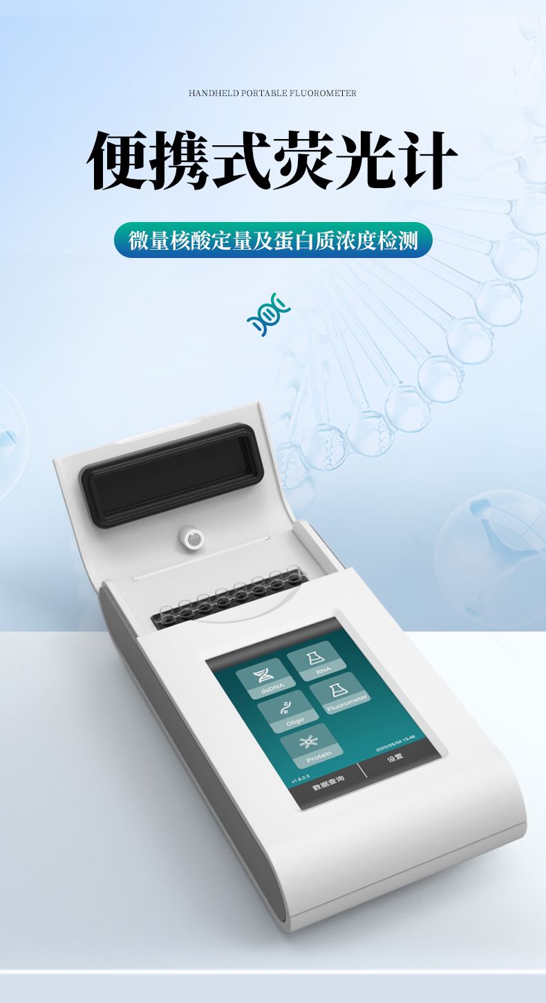 熒光計(jì)采用熒光檢測(cè)原理,上樣體積僅需1-20ul,配合相應(yīng)的定量試劑即可實(shí)現(xiàn)精確濃度定量。熒光計(jì)為開放平臺(tái),可靈活 適配不同試劑品牌,如Qubit? dsDNA 定量試劑盒, ssDNA 定量試劑盒,RNA 定量試劑盒, microRNA定量試劑盒等,以 及其它品牌適配Qubit? 4設(shè)備的定量試劑盒。
