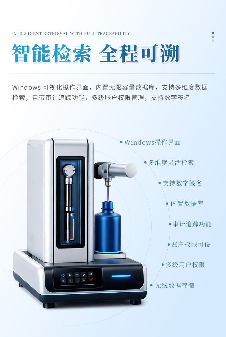 l Windows操作界面,內(nèi)置數(shù)據(jù)庫,無限數(shù)據(jù)存儲,可使用測試標(biāo)準(zhǔn)、樣品名稱、樣品批號、測試人員、測試時間等多種方式進(jìn)行檢索查詢