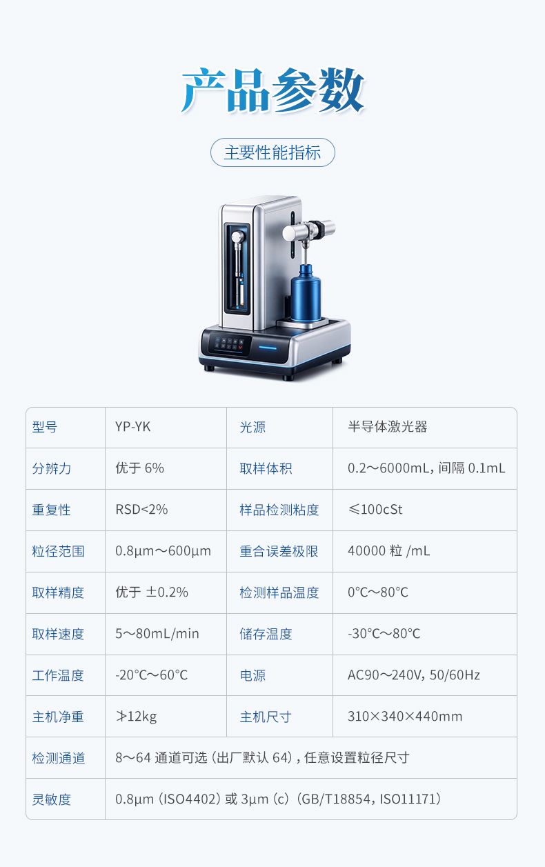 該儀器采用光阻(遮光)法計數(shù)原理研制。可提供快速、準(zhǔn)確、可靠、可重復(fù)的檢測結(jié)果,適用于多種低粘度液體中固體顆粒物尺寸和數(shù)量檢測。廣泛應(yīng)用于航空航天、電力半導(dǎo)體、石油化工、汽車制造等領(lǐng)域低粘度油液污染度分析、精密部件潔凈度評估、化學(xué)試劑與清洗劑微粒檢測,以及純化液體與超純水微粒測定。