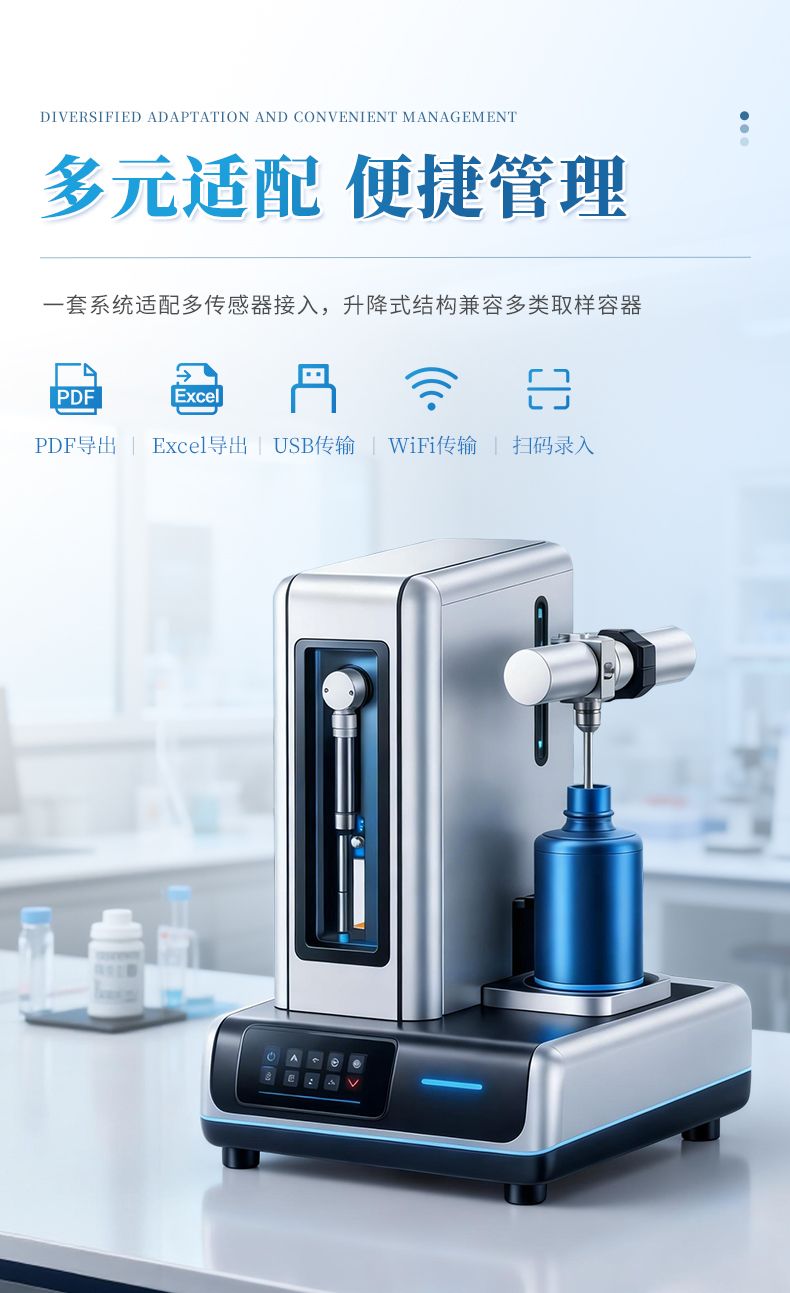 l 升降式傳感器設(shè)計,適用多種取樣容器,滿足不同行業(yè)的檢測要求