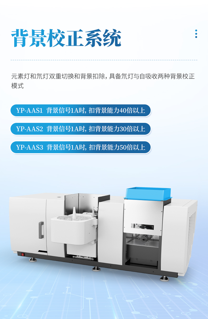 具備氘燈與自吸收兩種背景校正模式,背景信號 1A 時(shí),扣背景能力 40 倍以上。