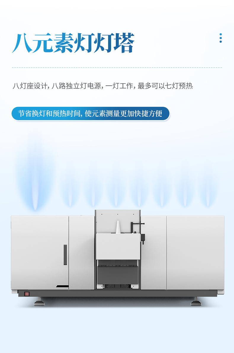 一燈工作,最多可以七燈預(yù)熱,節(jié)省了換燈和預(yù)熱時(shí)間,使元素測(cè)量更加快捷方便。