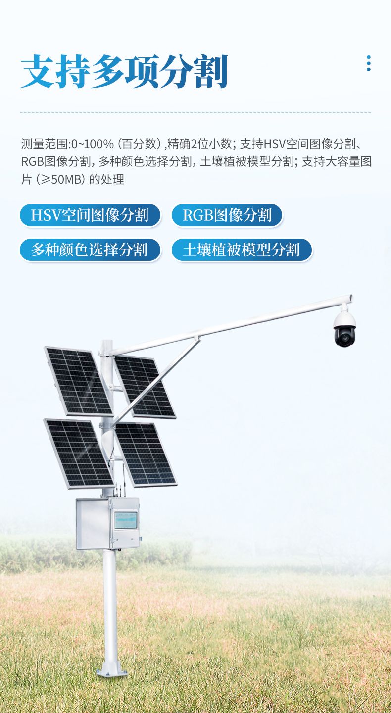 植被蓋度分析系統(tǒng)根據(jù)圖像識(shí)別原理來(lái)實(shí)現(xiàn)自動(dòng)分析,用于植被覆蓋度和郁閉度的精確測(cè)量。儀器具有良好的防水性能,并帶有太陽(yáng)能供電系統(tǒng),可在戶外環(huán)境下長(zhǎng)期自動(dòng)定時(shí)采集分析,獲取植被長(zhǎng)期生長(zhǎng)變化情況。