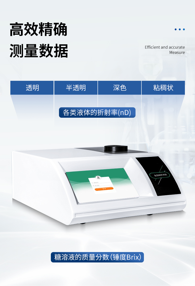 全自動(dòng)折光儀配備高性能線陣CCD感光部件,通過高速、高精度的信號(hào)采集和分析處理技術(shù),配有半導(dǎo)體帕爾貼超級(jí)溫度控制系統(tǒng)。能高效、高精確測(cè)量透明、半透明、深色、粘稠狀等各類液體的折射率(nD)和糖溶液的質(zhì)量分?jǐn)?shù)(錘度Brix)。