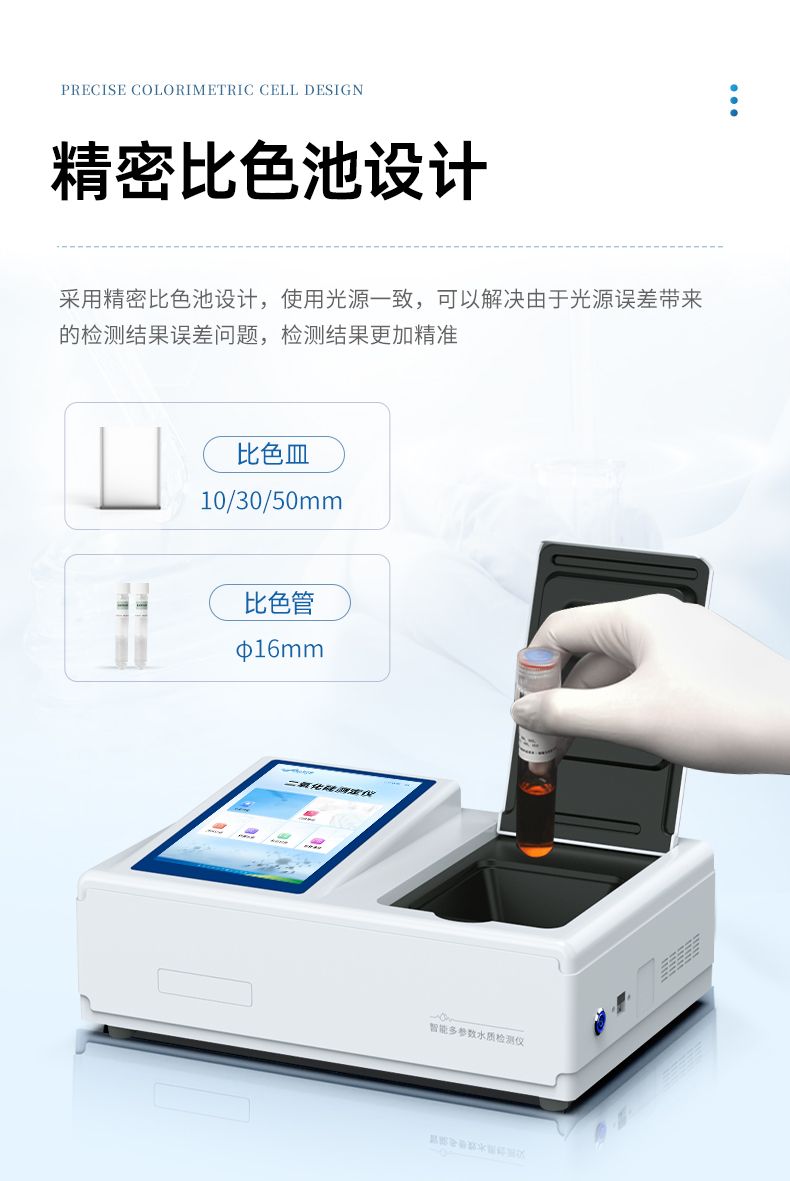 3、采用精密比色池設(shè)計(jì),使用光源一致,可以解決由于光源誤差帶來的檢測(cè)結(jié)果誤差問題,檢測(cè)結(jié)果更加精準(zhǔn)。