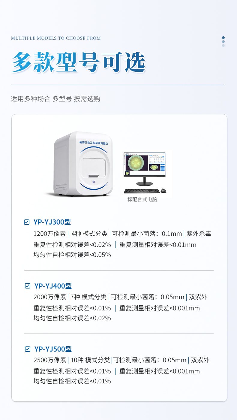 本產(chǎn)品是一款集圖像采集、數(shù)據(jù)處理與統(tǒng)計(jì)分析于一體的菌落計(jì)數(shù)及抑菌圈測(cè)量?jī)x,廣泛應(yīng)用于食品、藥品、化妝品、環(huán)境監(jiān)測(cè)、醫(yī)療衛(wèi)生、科研院校等領(lǐng)域。儀器采用先進(jìn)的數(shù)字圖像處理技術(shù),具備熒光菌識(shí)別、抑菌圈測(cè)量及效價(jià)測(cè)定和殺菌功能,可快速精準(zhǔn)完成培養(yǎng)皿內(nèi)菌落的測(cè)量分析、抑菌圈測(cè)量及抗生素效價(jià)測(cè)定,大幅提升實(shí)驗(yàn)效率,有效降低人工操作誤差。
