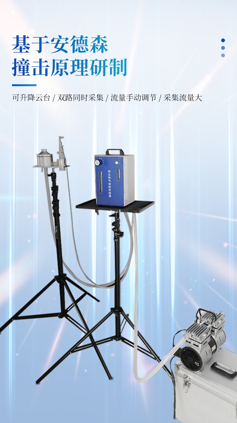 本產品符合標準《GB/T 18204.5-2013 公共場所衛(wèi)生檢驗方法 第5部分:集中空調通風系統(tǒng)》和衛(wèi)生行業(yè)標準《WS 394-2012 公共場所集中空調通風系統(tǒng)衛(wèi)生規(guī)范》要求,采集集中空調送風,檢測其中的嗜肺軍團菌。采集流量大,使需要的粒子短時間濃縮到采樣器中,避免長時間采樣帶來的生物活性損失,提高采樣器的現場實用性。