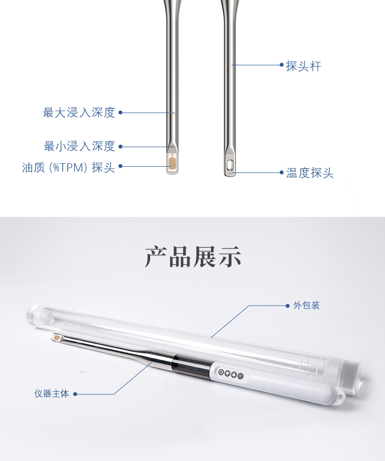 食用油脂是人們攝取能量和營養(yǎng)的重要來源,是加工食品的重要原料。油炸食品以其特有風(fēng)味廣受消費(fèi)者喜歡。用于煎炸的食用油在高溫煎炸過程中發(fā)生一系列的物理、化學(xué)變化,這些變化會(huì)生成對(duì)身體健康有害的物質(zhì)。目前,煎炸食用油的傳統(tǒng)檢測(cè)方法多為化學(xué)方法,這些方法必須在實(shí)驗(yàn)室內(nèi)由專業(yè)人員操作,費(fèi)時(shí)費(fèi)力,化學(xué)試劑的使用可能會(huì)傷害檢測(cè)人員健康,且化學(xué)廢劑污染了環(huán)境。YP-SYP是一種快速,安全,高效食用油品質(zhì)檢測(cè)儀,能夠快速檢測(cè)食用油中的極性化合物組分(TPM)含量。本產(chǎn)品能夠在油溫較高的環(huán)境下使用,適用于各種煎炸的食用油品質(zhì)檢驗(yàn)。