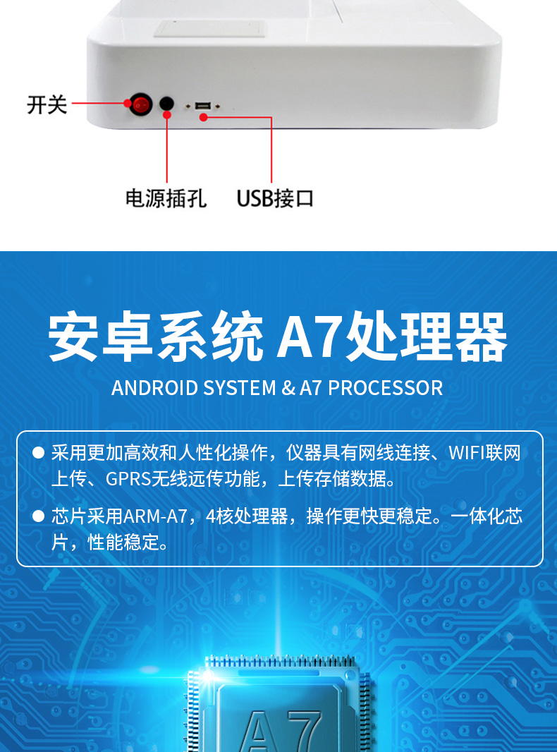 1、安卓智能操作系統(tǒng),采用更加高效和人性化操作,儀器具有網(wǎng)線連接、wifi聯(lián)網(wǎng)上傳、GPRS無線遠(yuǎn)傳功能,快速上傳數(shù)據(jù)。