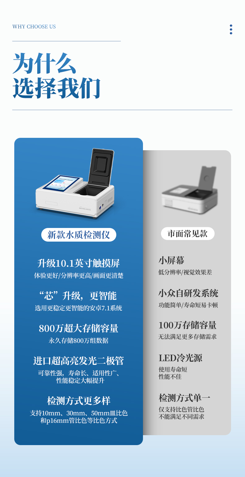 3、采用精密比色池設(shè)計(jì),使用光源一致,可以解決由于光源誤差帶來的檢測(cè)結(jié)果誤差問題,檢測(cè)結(jié)果更加精準(zhǔn)。