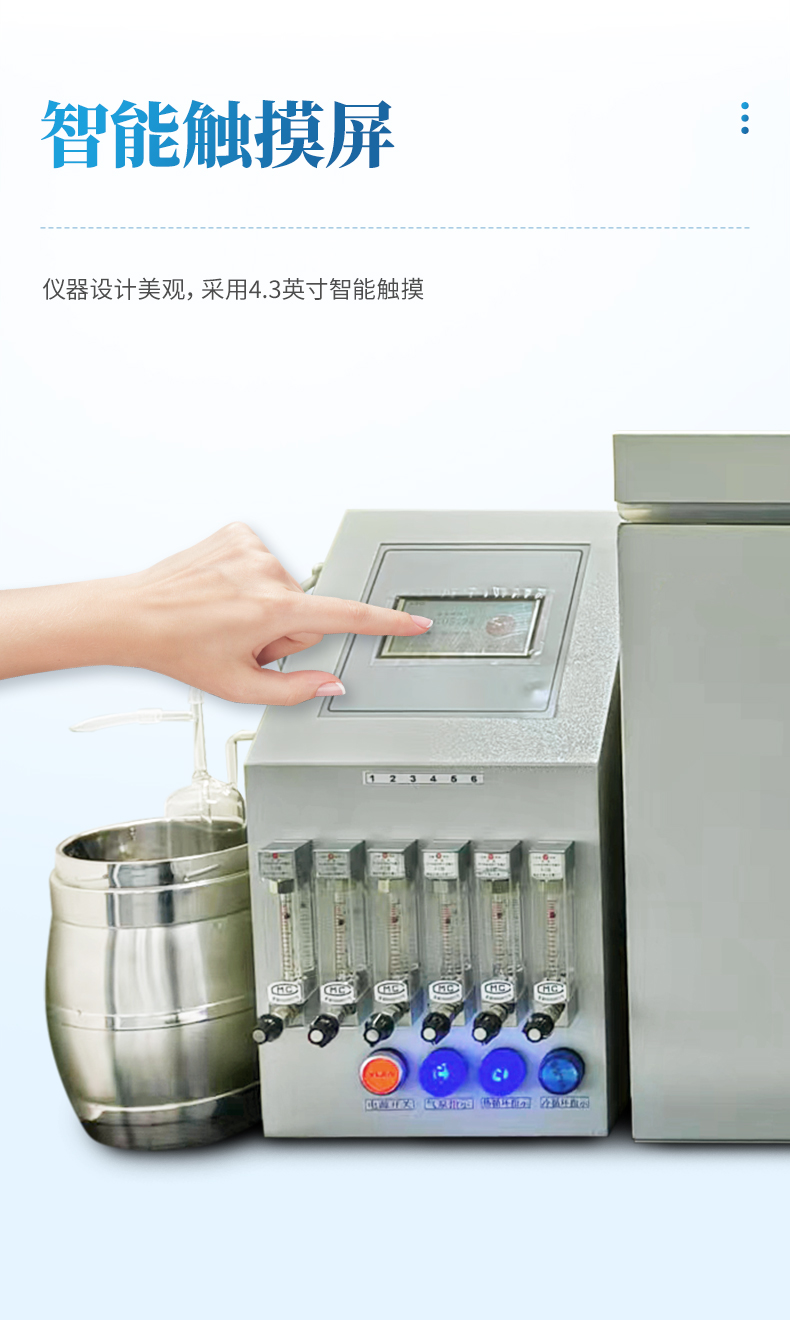 四氯化碳吸附率測(cè)定儀適用于活性炭四氯化碳(活性)吸附率的測(cè)定;符合GBT7702.13、GBT12496.5國標(biāo)要求:1儀器設(shè)計(jì)美觀,采用4.3寸智能觸摸屏,標(biāo)配冷水循環(huán)裝置,自動(dòng)控制水浴箱的加熱和制冷功能,使水溫始終保持在設(shè)定溫度,全新智能計(jì)時(shí)功能,可任意設(shè)置工作時(shí)間,避免了人工計(jì)時(shí)的不確定性。采用分體設(shè)計(jì),由CPU集成電路控制器、恒溫水箱、氣體凈化和冷水循環(huán)機(jī)四部分組成智能檢測(cè)設(shè)備,設(shè)計(jì)6路通道(8通道),同時(shí)一次性檢測(cè)分析6個(gè)樣品,提高操作分析試驗(yàn)工作效率。采用高精度鉑探頭,非固定方式的探頭設(shè)計(jì),可隨時(shí)測(cè)定水浴箱內(nèi)每個(gè)地點(diǎn)的溫度。采用進(jìn)口保溫材質(zhì),恒溫效果極佳,從而更加節(jié)能。