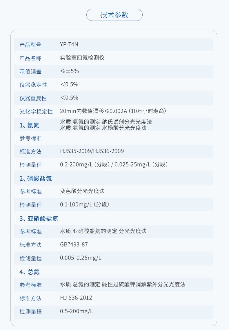 光化學穩(wěn)定性:20min內數(shù)值漂移≤0.002A(10萬小時壽命);