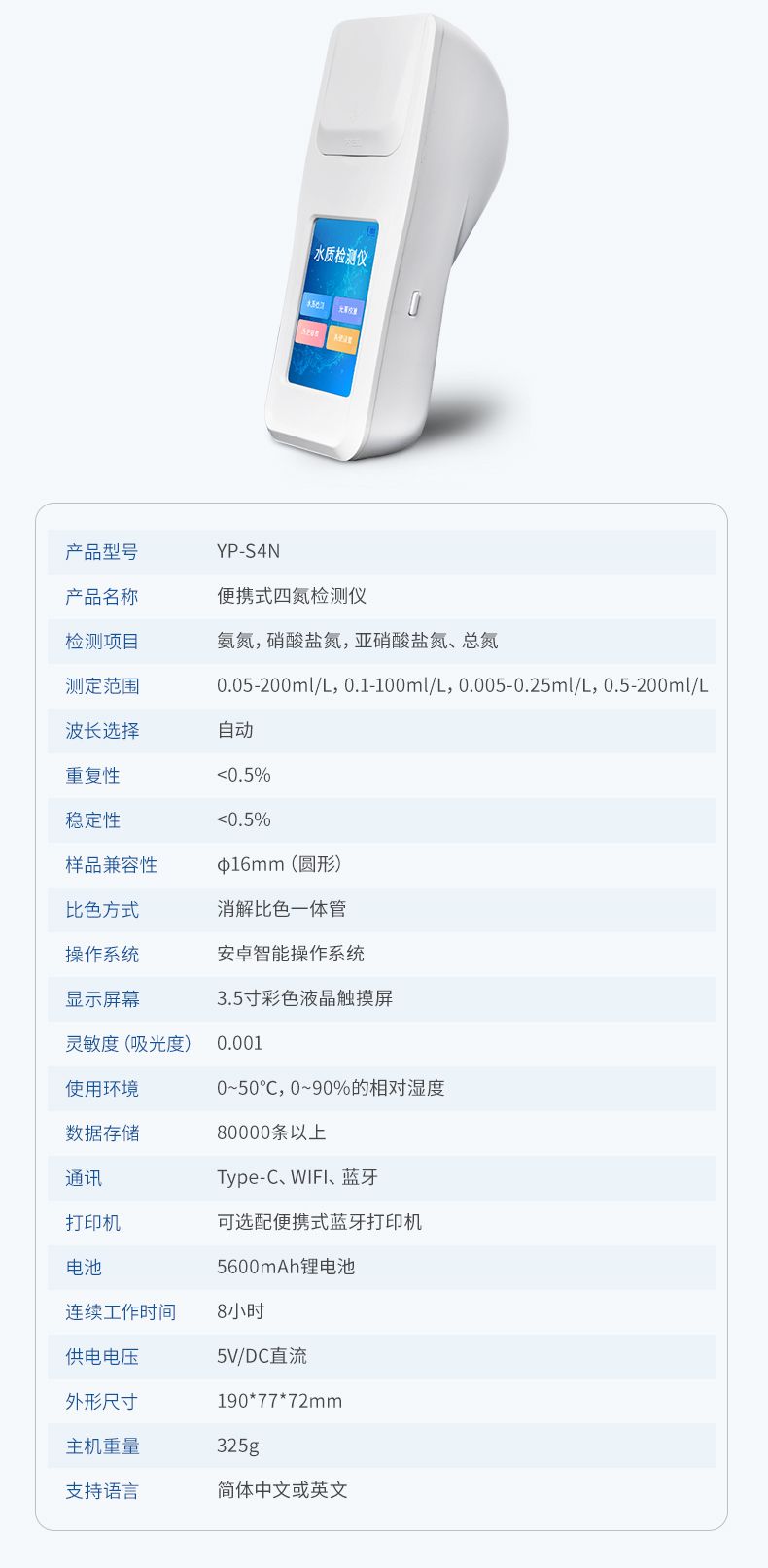 手持式水質(zhì)四氮檢測儀主要檢測水體中的氨氮、硝酸鹽氮、亞硝酸鹽氮、總氮含量;參考國標(biāo)以及環(huán)境標(biāo)準(zhǔn)研發(fā)設(shè)計制造,儀器配備高清晰度彩色液晶觸摸顯示屏,Android智能操作系統(tǒng),中文顯示界面,中英文鍵盤,人性化操作,使用更簡單;