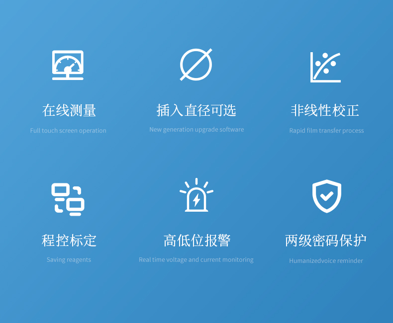 插入直徑可選,各種插入直徑的膜透器有多種插入長度可選。儀器具有非線性校正,程控標定,高低位報警,兩級密碼保護重要數(shù)據(jù)和菜單組態(tài)等功能。