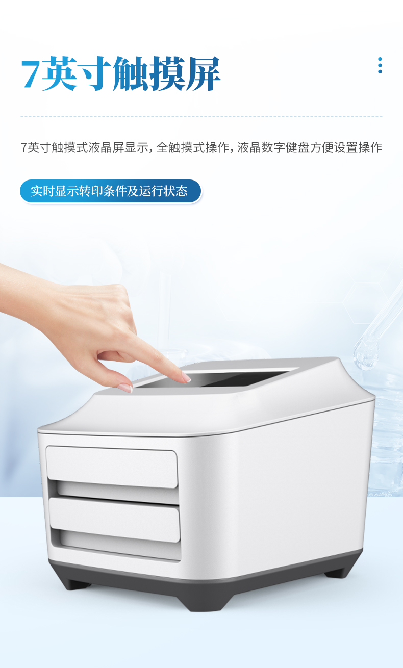 *7寸觸摸式液晶屏顯示,全觸摸式操作,液晶數(shù)字健盤方便設(shè)置操作,實(shí)時(shí)顯示轉(zhuǎn)印條件及運(yùn)行狀態(tài)。