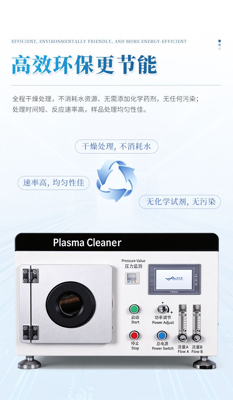 對氣體施加足夠的能量使之離化便成為等離子狀態(tài)。等離子體的"活性"組分包括:離子、電子、活性基團、激發(fā)態(tài)的核素(亞穩(wěn)態(tài))、光子等。等離子體表面處理儀就是通過利用這些活性組分的性質來處理樣品表面,從而實現(xiàn)清潔、改性、